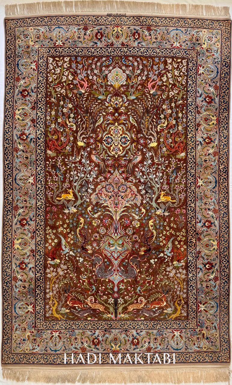 One of the richest & awesomest old Isfahans Iβve seen, crafted by the legendary Grand Master Yadollah Haghighi who sadly passed away many years ago. The amount of silk in the motifs is crazy! The design is intricately rich and very visually rewarding.