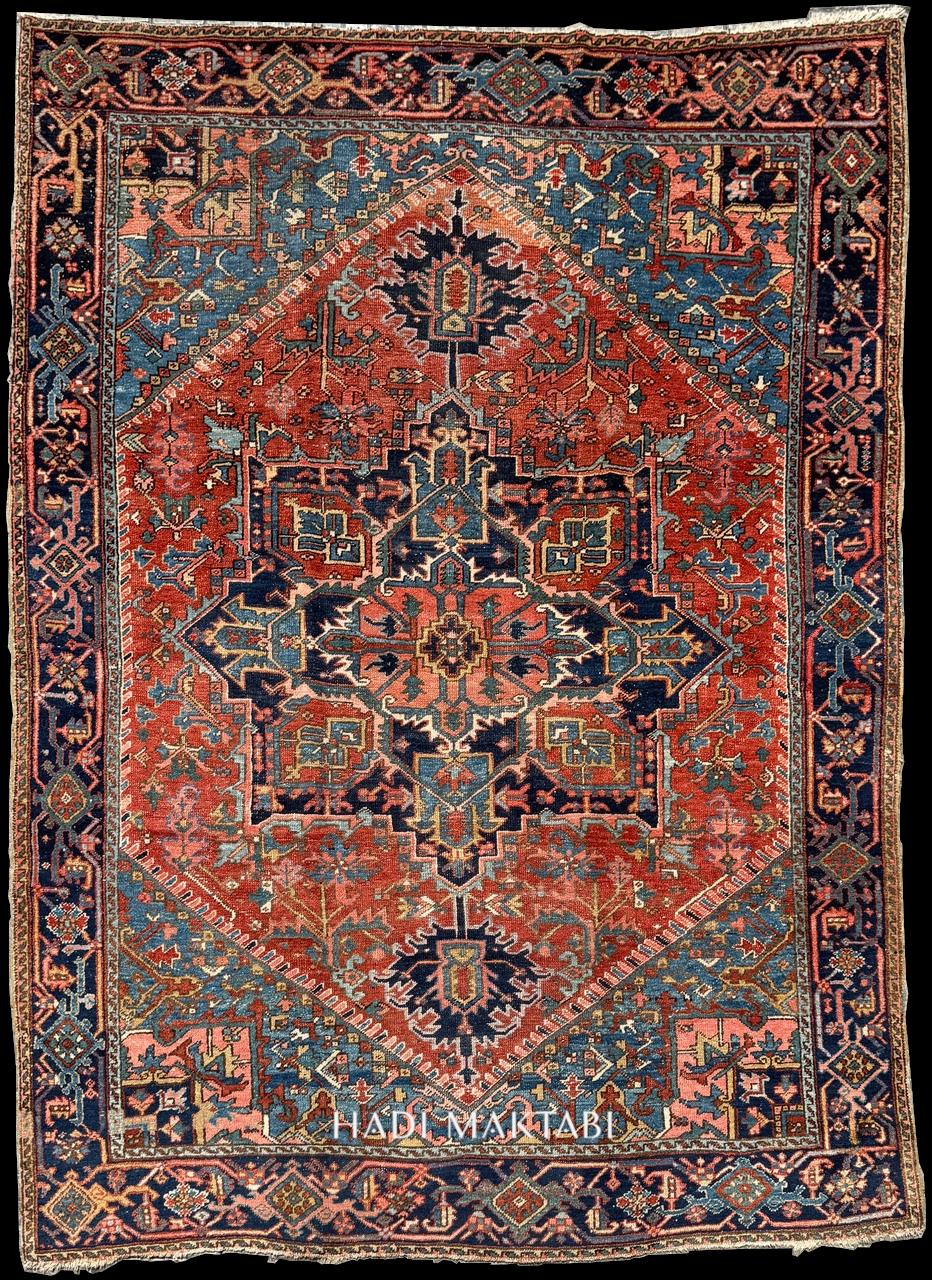 Does any antique rug offer more visual and tactile pleasure than a good old Heriz with a dash of sky blue?