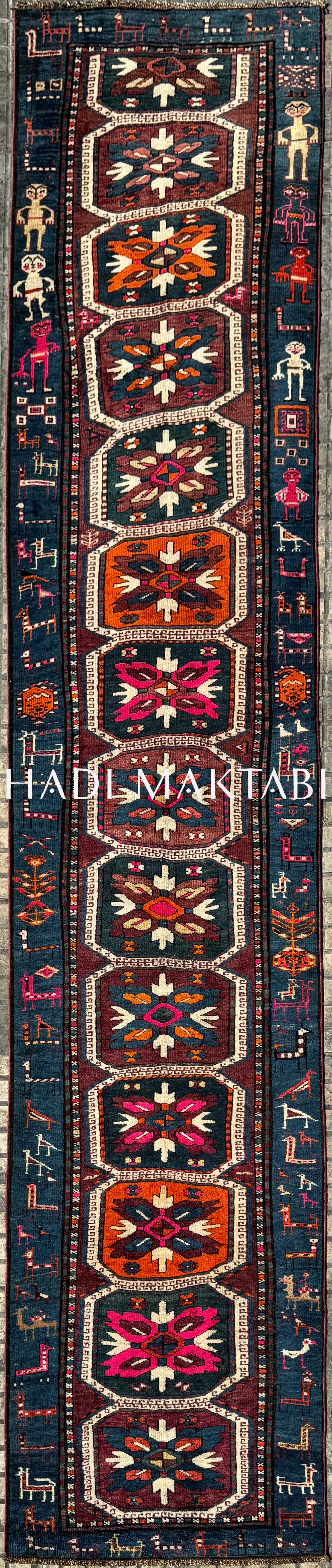 Plain weird yet dizzyingly attractive, this antique Karabagh runner has some crazy colors and bizarre iconography. Just what the hell is going on inside that border? Trust me, you won’t find anything like it out there. It’s a keeper if you like antiques with strong, irrepressible character.