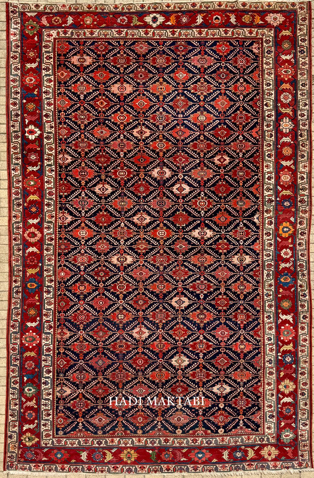 The dimensions are ideal and the aesthetics highly decorative. It is generously proportioned, being substantially wide and easier to use than the narrow ππ¦πππ¦π© format carpets. The lattice theme harkens back to the important 18th century carpets discussed in my book πππ πππ§π¨πππ£ πΎππ§π₯ππ©: πππ ππ€π§ππ€π©π©ππ£ ππππ§π¨ 1722-1872. As such this carpet is older than most Malayers around, closer to the earlier decades of the 19th century than others.