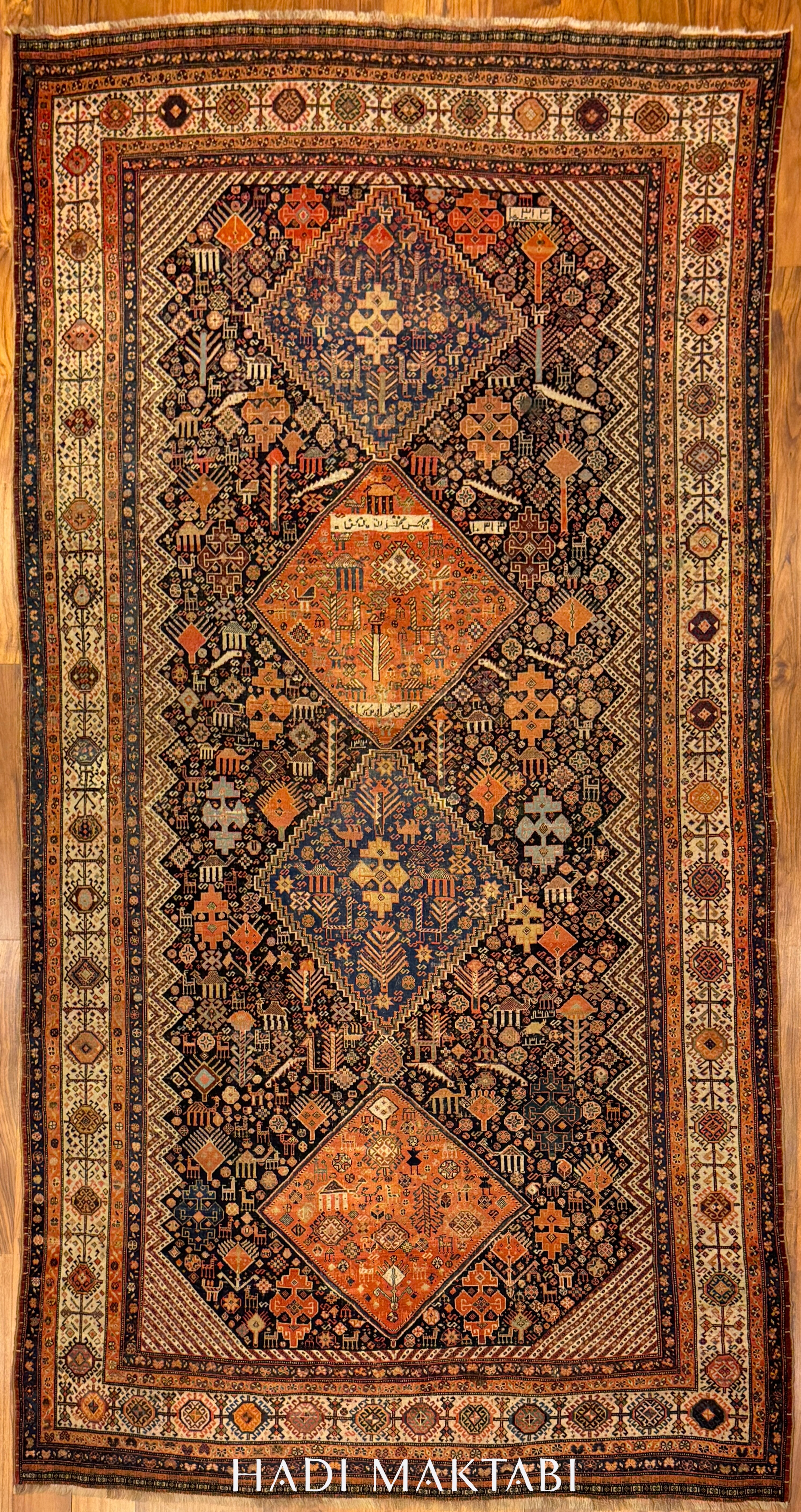 Tribal palatial museum vibes. An aristocratic Shekarlu clan XXL carpet woven for the royal court. It is inscribed